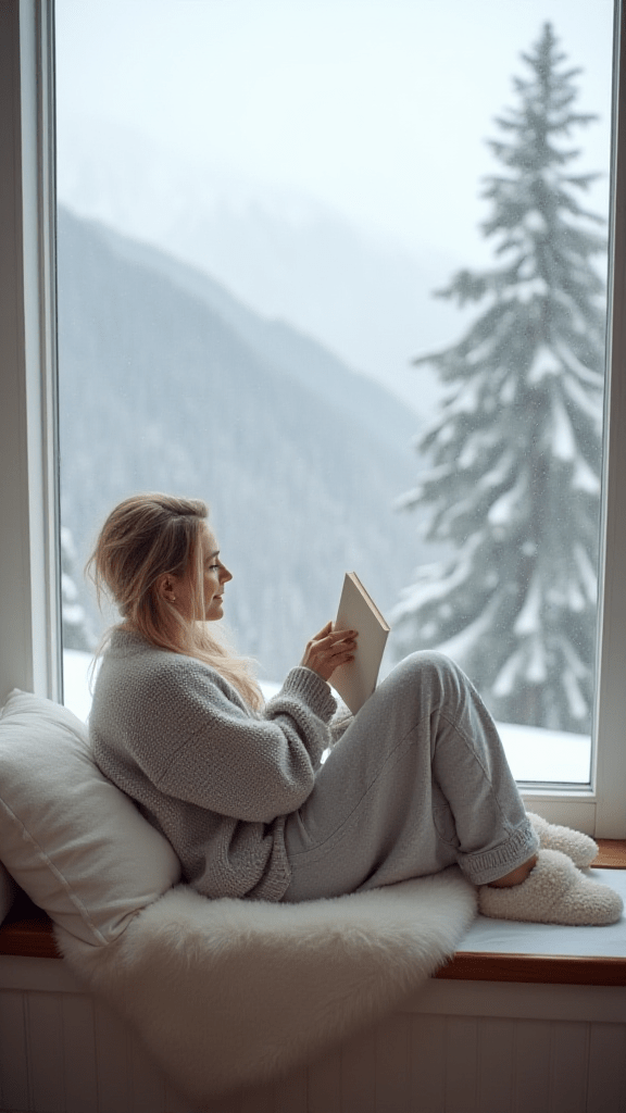 This outfit focuses entirely on comfort and softness. A cashmere lounge set provides warmth while feeling lightweight and luxurious. The coordinated pieces make the outfit feel intentional rather than lazy. Slippers complete the look, making it ideal for indoor winter days when relaxation and comfort are the main priorities.