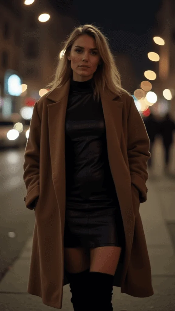 Add a long coat for warmth and drama. Perfect for nights when you want to command attention and maybe even do a little impromptu karaoke.