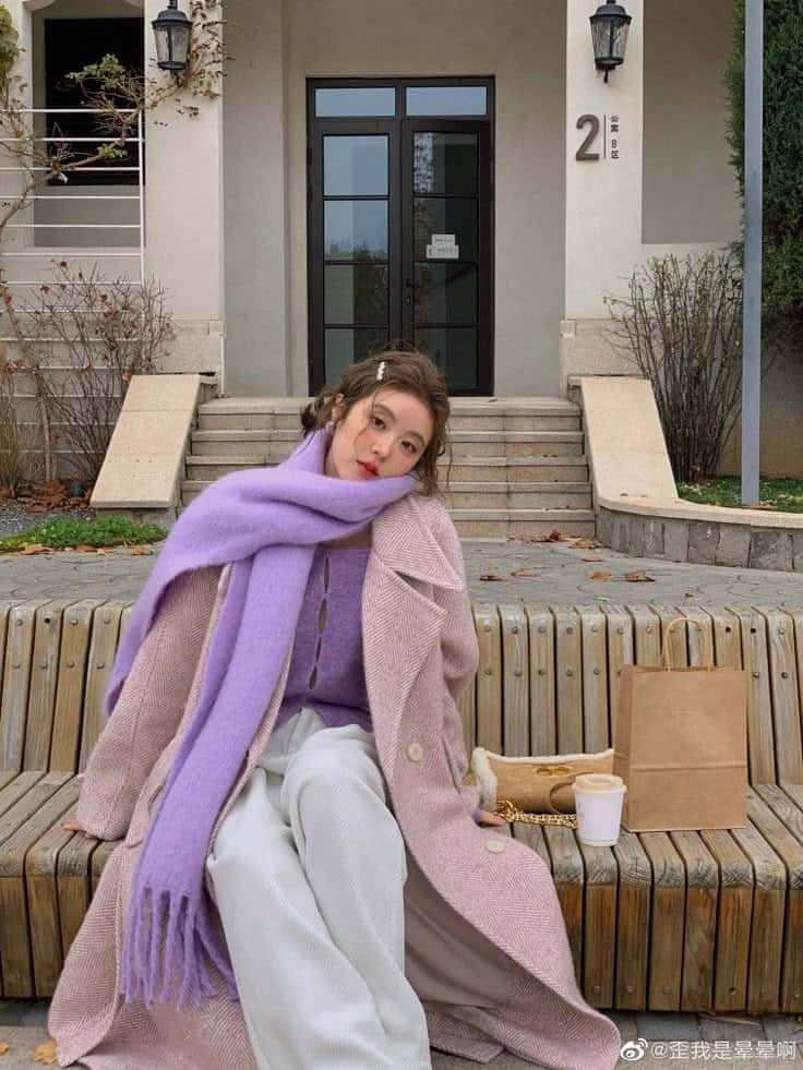 A warm coat is useful when the weather gets colder. Light colors make the outfit look soft even with heavy clothes.
