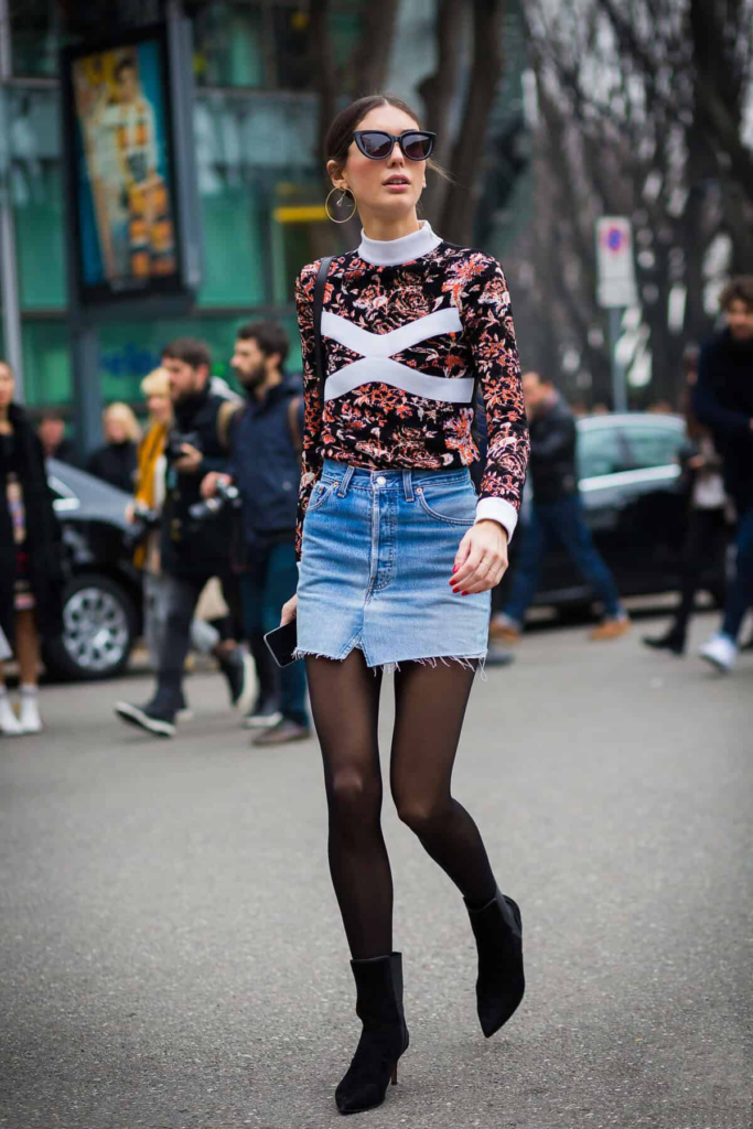 This is one of the easiest ways to wear a jean skirt in autumn while still looking fashionable.
