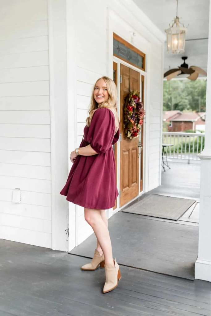 Burgundy Dress with Ankle Boots