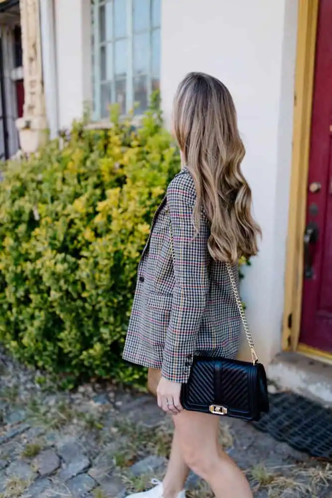 Chic Plaid Blazer with Quilted Bag