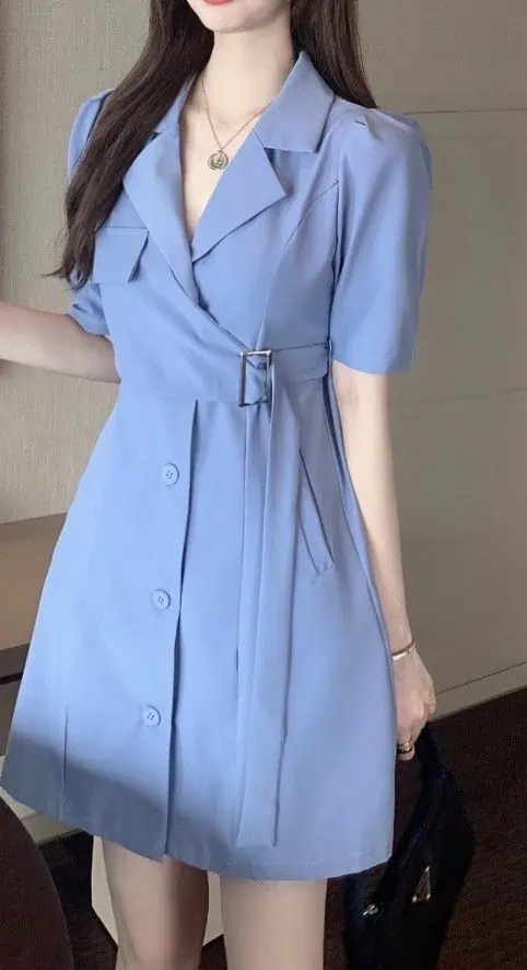 This dress offers both elegance and comfort in one piece. The soft blue tone feels calm and friendly, which works well in a classroom environment. The wrap style flatters the figure while allowing flexibility and movement.