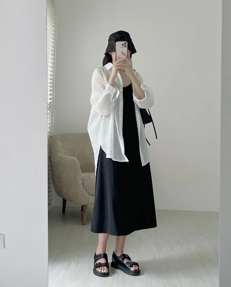 Layering light clothes helps when the weather changes during the day. A long dress with a shirt on top looks relaxed but still neat.