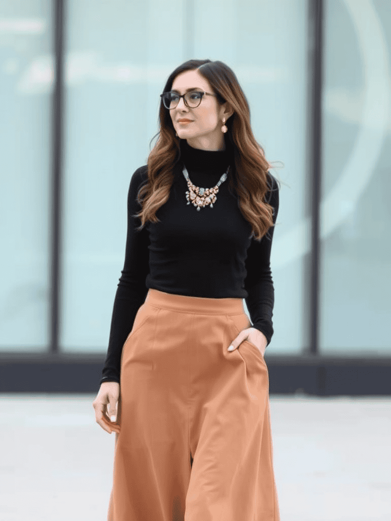 4. Turtleneck and Midi Skirt